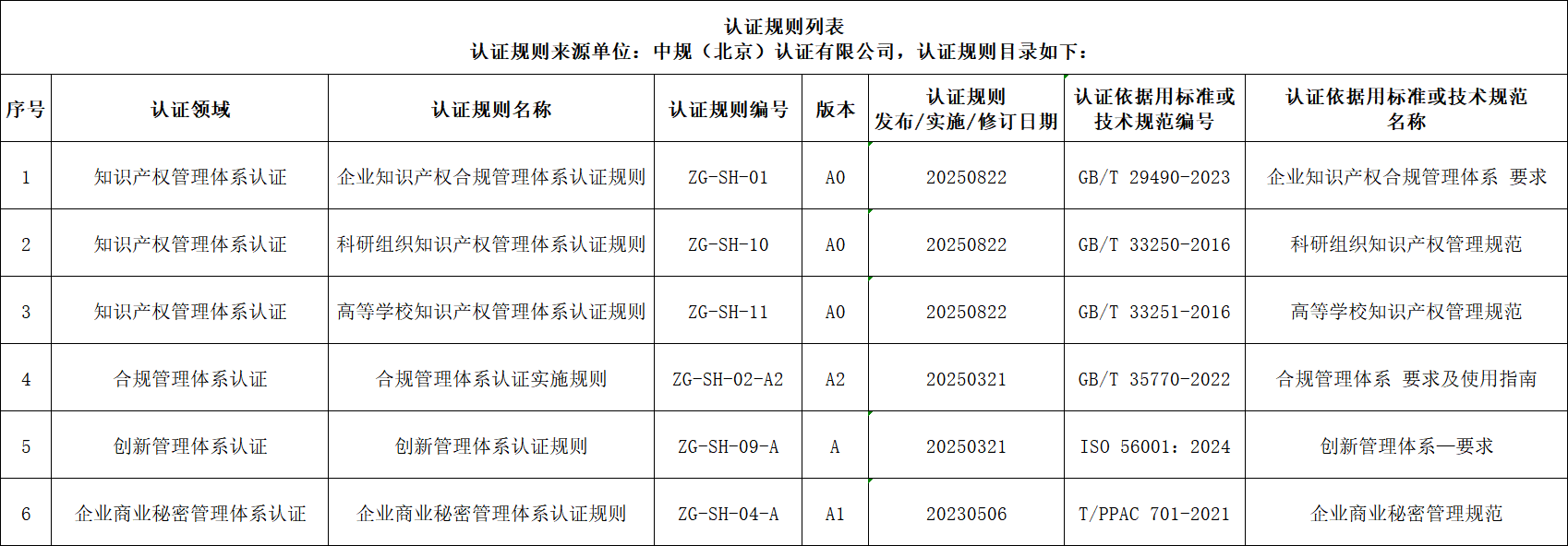 上述認證規則歸中規(北京)認證有限公司所有,中規(北京)認證有限公司對其擁有最終解釋權。任何組織及個人未經中規(北京)認證有限公司許可,不得以任何形式全部或部分使用(法律要求除外)認證相關信息。