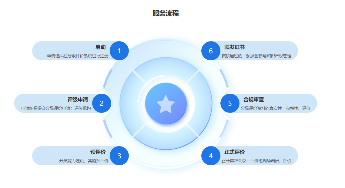 申請組織提交評級申請→評價機構(gòu)評審與受理→簽訂合同