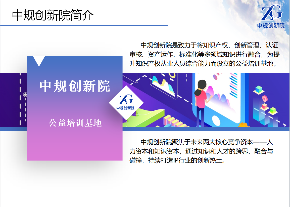 中規創新院致力于成為管理體系審核員職業道路上的加油站,持續提供知識產權、標準、相關法律法規及政策解讀、體系審核技能等課程和資訊,幫助審核員將知識產權專業知識深度融入傳統體系認證,更好地踐行“增值審核”的理念。